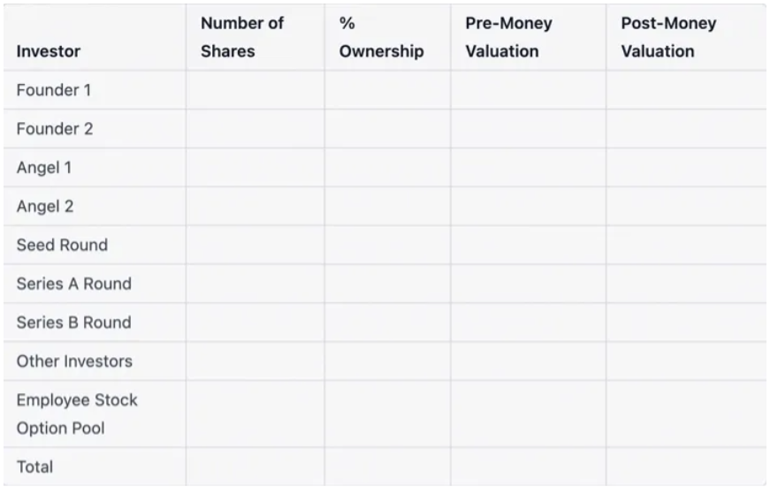 - Keep it updated: Make sure to update the cap table regularly as the equity ownership structure of your company changes.
